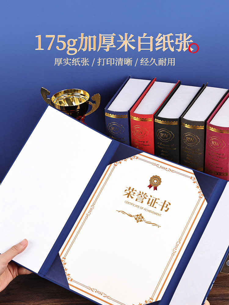 高档荣誉证件书定制创意国潮风高级感聘书a4奖状外壳结业征书烫金封面封套订做内页打印企业员工授权书印logo