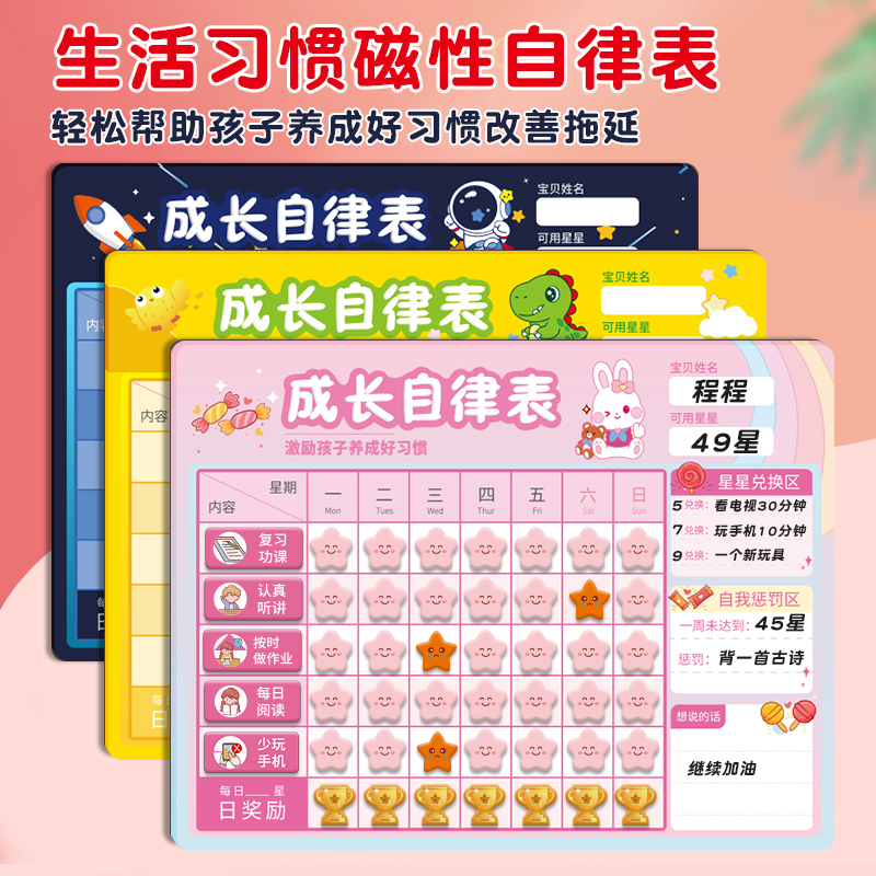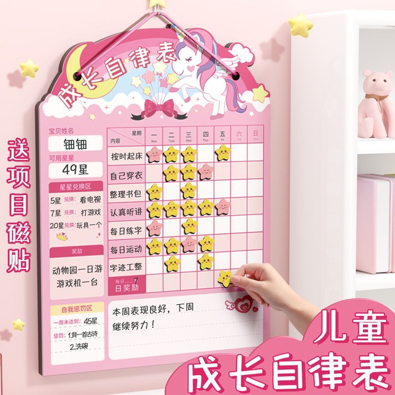 儿童自律积分表奖励孩子的计划表积分学习打卡记录积分榜神器磁性贴家庭版好习惯养成成长每日规则小红花房间