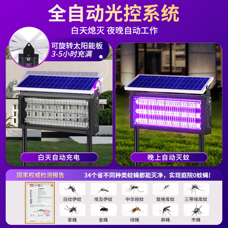 太阳能灭蚊灯户外室外庭院花园灭蝇灯驱蚊诱灭蚊子虫神器系统室内