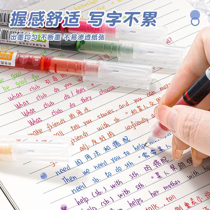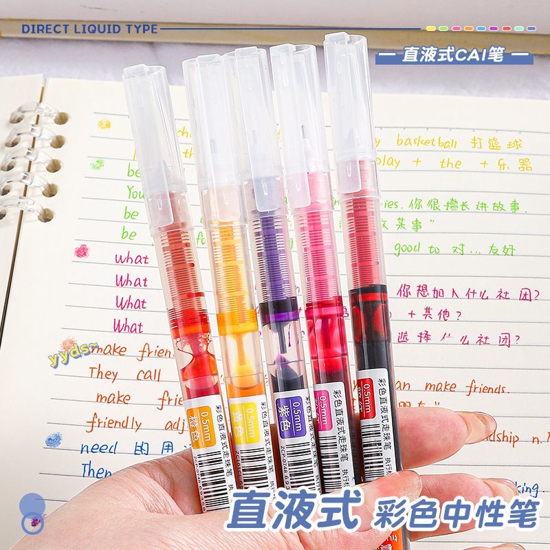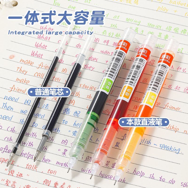 真彩彩色中性笔学生用彩色笔做笔记专用直液式走珠笔0.5直液笔黑色速干水笔重点标记神器红笔直流圆珠笔套装