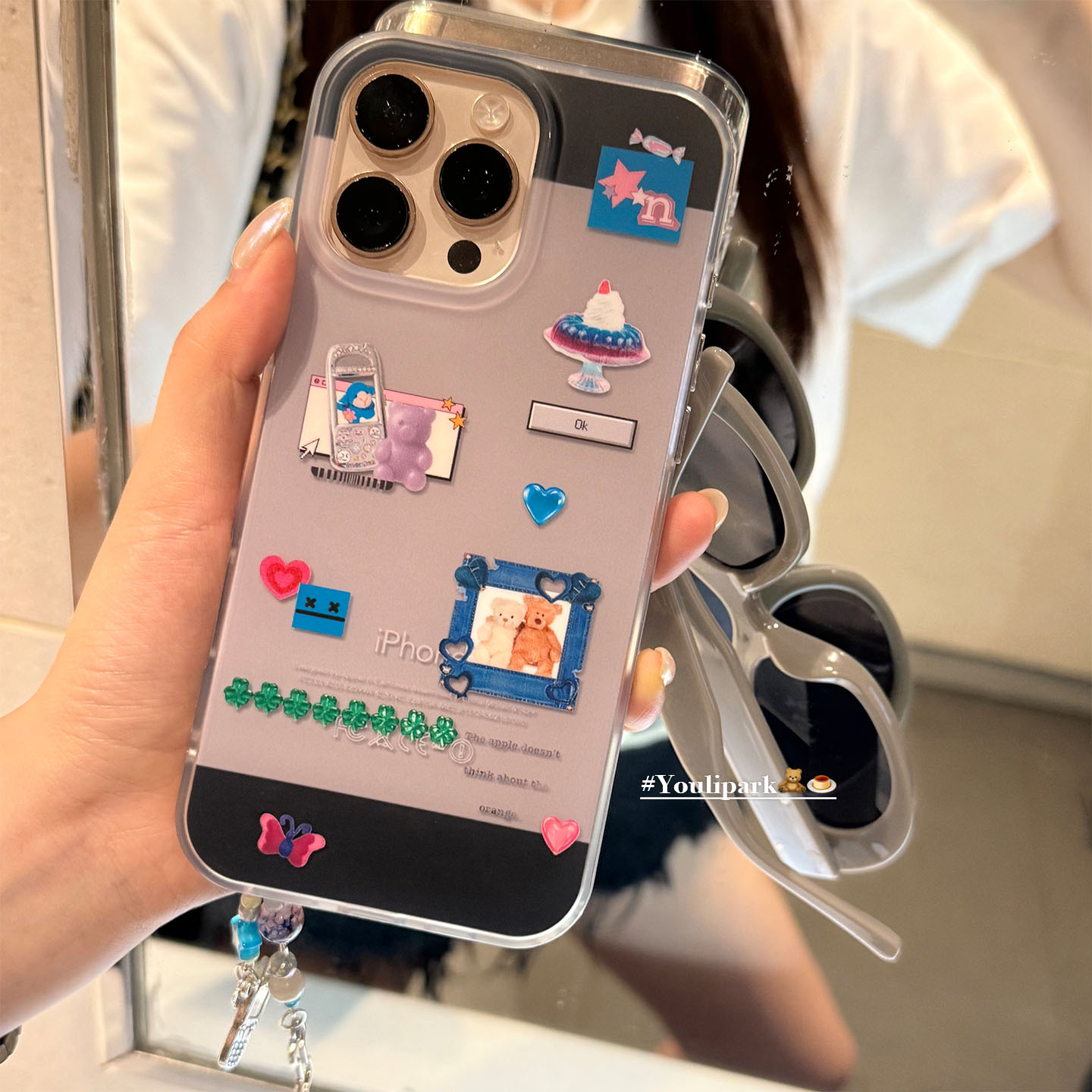由里公园ins小众时髦古早风插画小熊15适用17pro苹果17ProMax手机壳iPhone16全包17新款14Promax保护套13少女