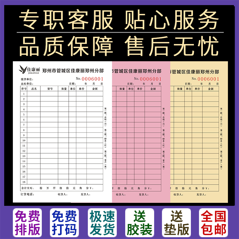 收据定制送货单二联三联定做订制销货销售清单订货发货开单本收款报销印刷四联出入库点菜单定做单据合同票据