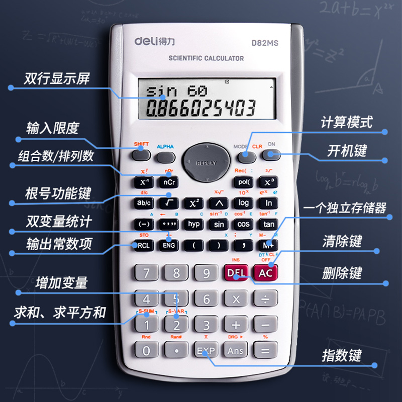 得力科学计算器学生考试专用大学生初中生多功能函数计算机器小型计箅器正品无高中双行显示根号存储教材好评