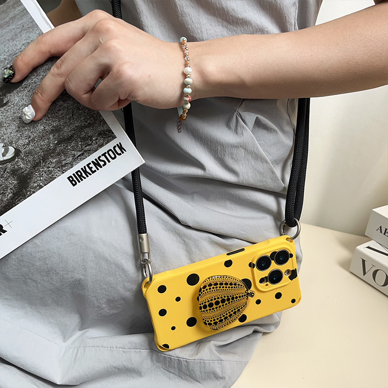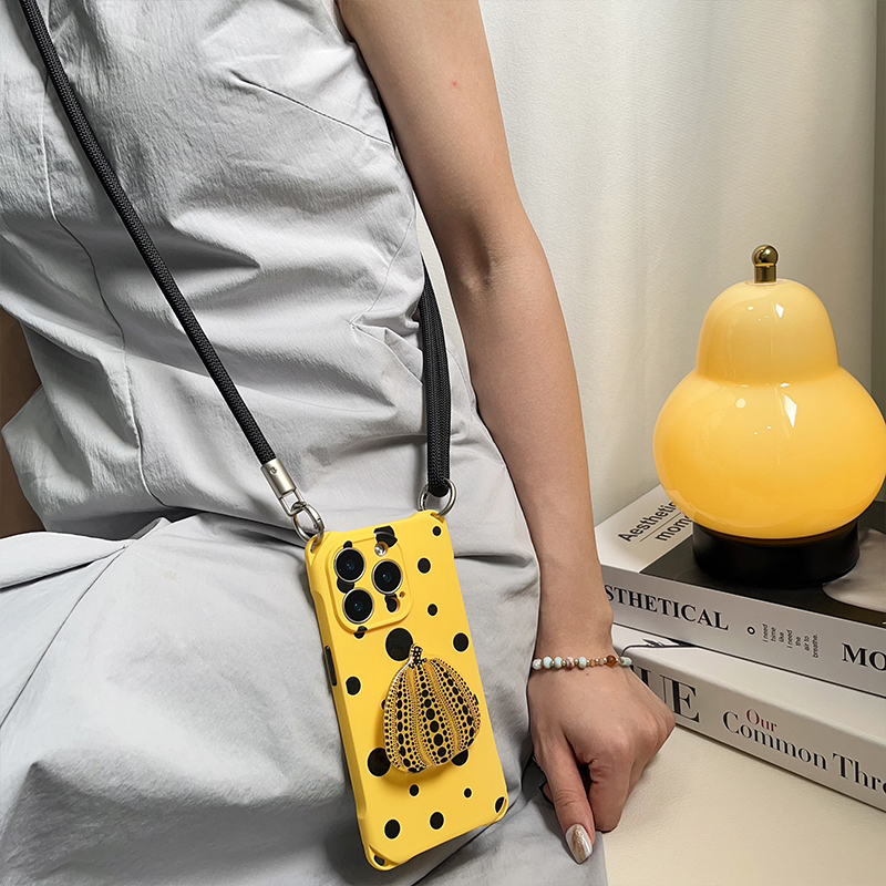 草间弥生~原创斜挎可背波点南瓜支架手机壳适用于苹果16Pro可调节挂绳vivox200背带斜跨小米15褶皱链条pura70