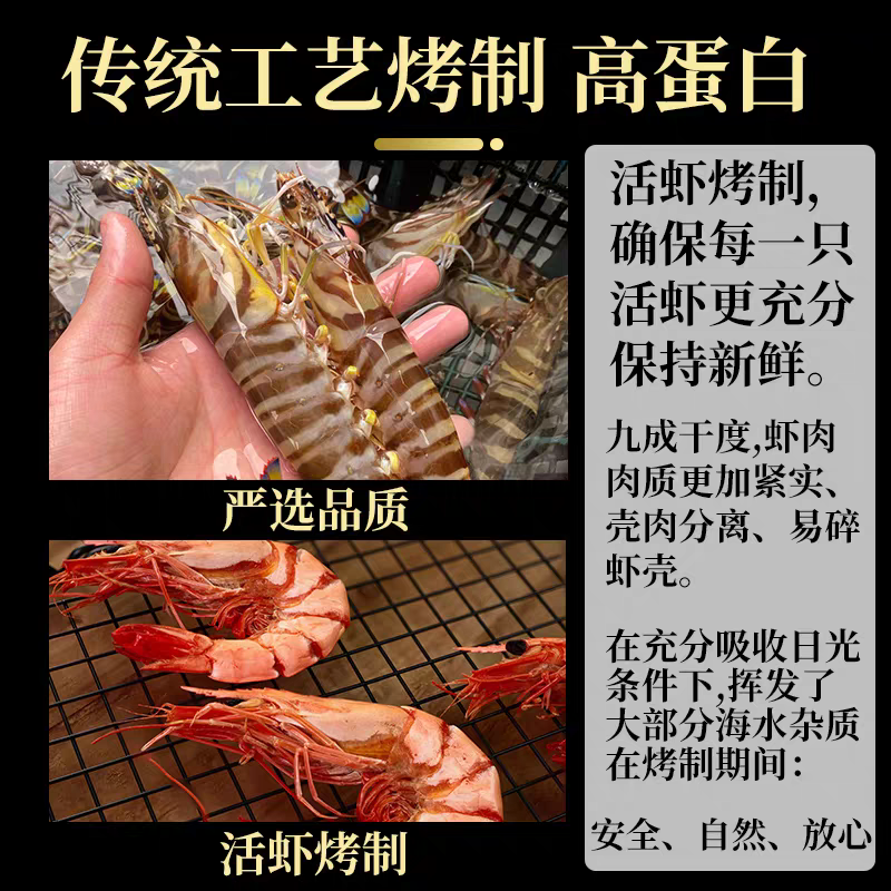 九节虾干即食特大烤虾干开袋即食大虾对虾斑虾海鲜干货孕妇零食A2