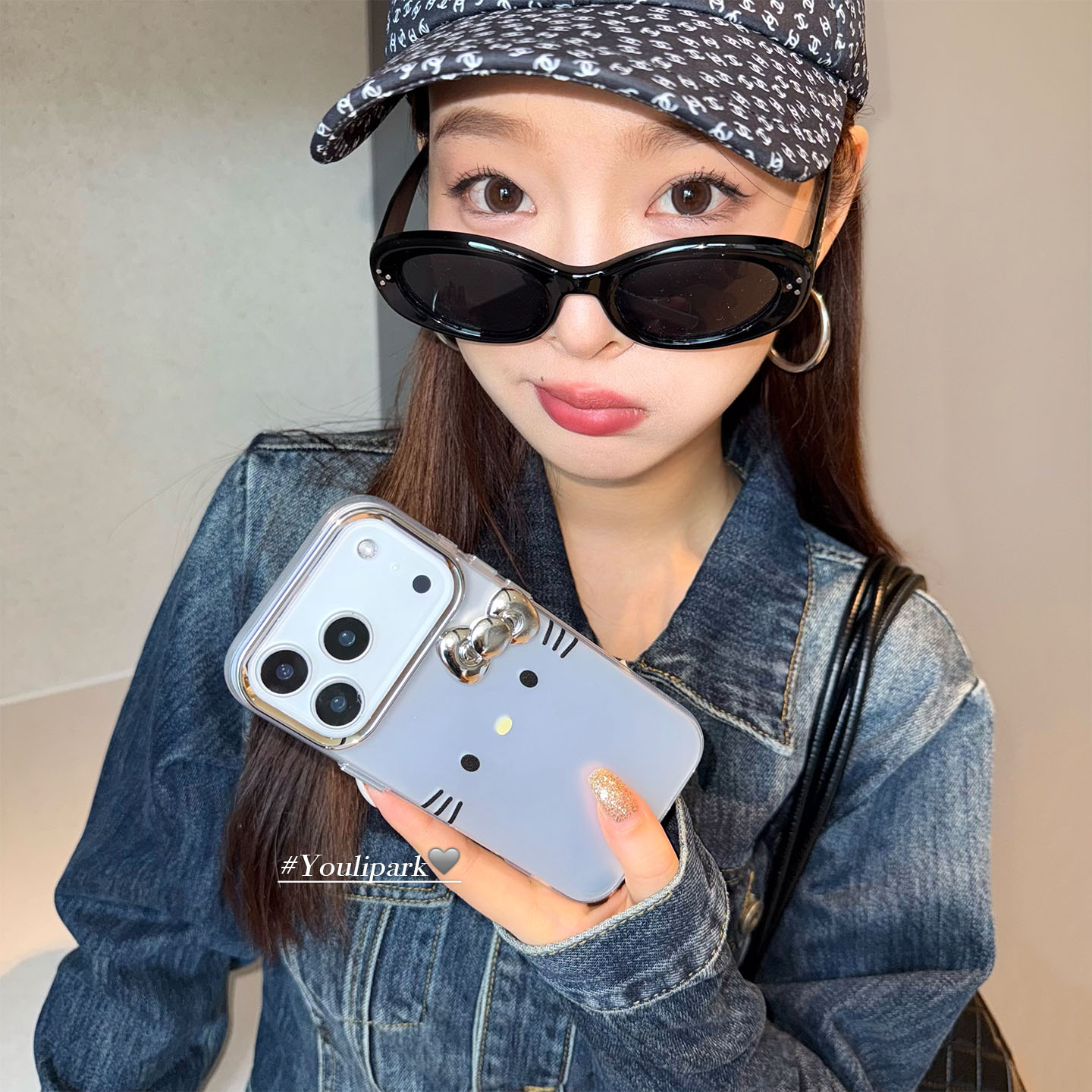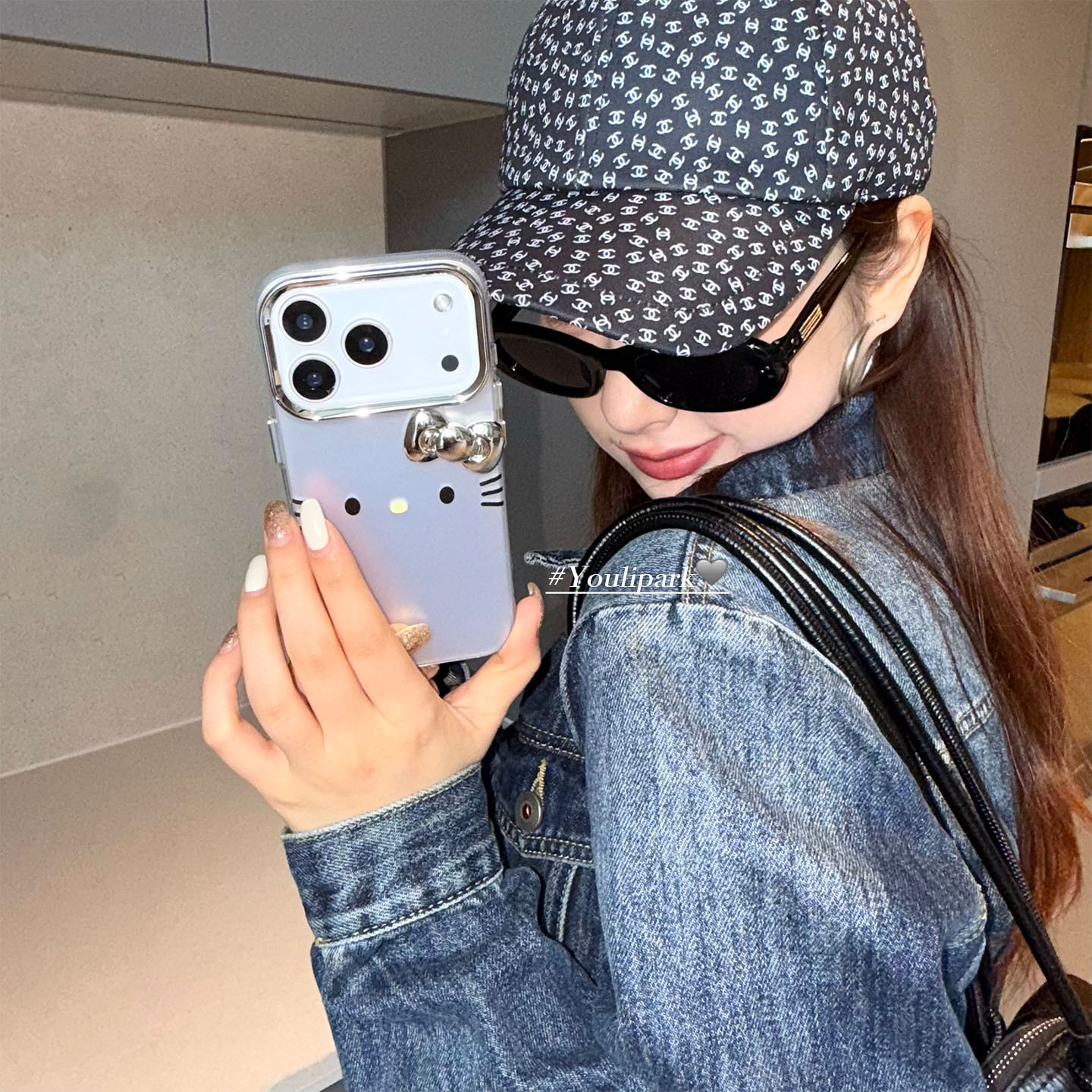 由里公园ins韩系可爱电镀银蝴蝶结猫咪17适用17pro苹果17ProMax手机壳iPhone16全包14新款16Promax保护套13女