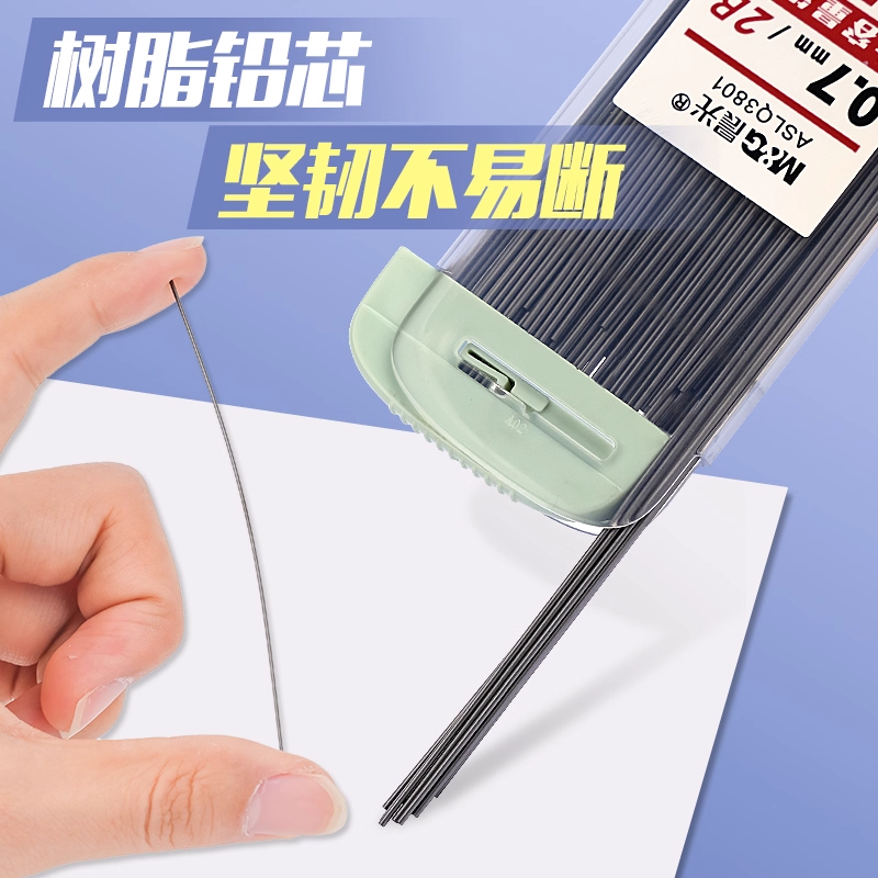 M&G晨光正品大容量铅芯0.5/0.7mm学生专用自动铅笔2B/HB书写字迹顺滑不断铅加长款盒装便携收纳不易断考试