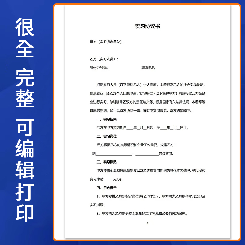 (不盖章)大学生第三方实习协议合同签订模板详细版合同模版范本电子版 (不盖章的这个祇是模版)