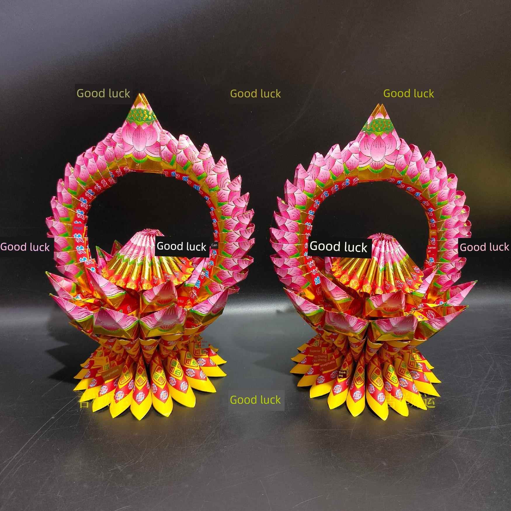 手提式花篮材料包装要求自折叠莲花和金莲塔手工折纸烫金潮汕中秋折叠塔