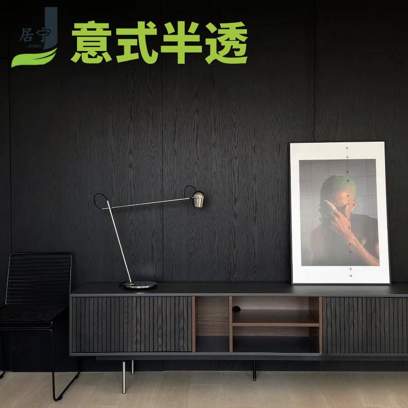 天然意式半透黑橡木科定kd板bs木饰面板护墙板黑色面板柜体板