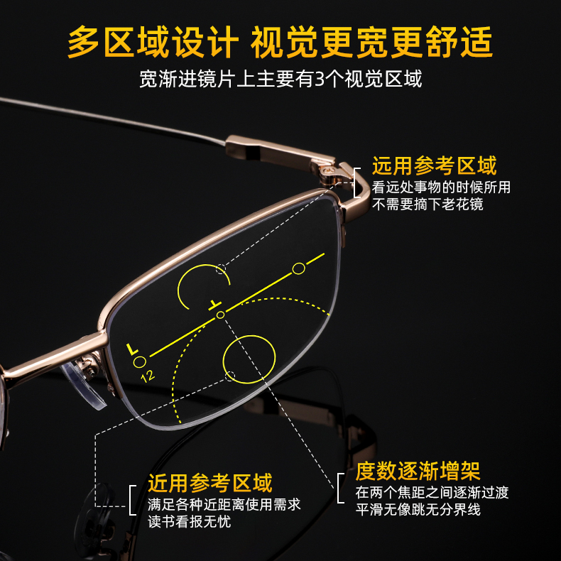 远近两用老花镜男渐进多焦点品牌老花眼镜智能变焦防蓝光远视镜女