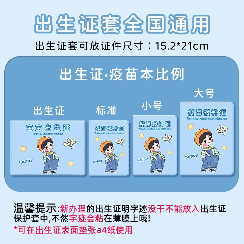 卡通男孩女孩出生证疫苗本保护套PU防水可定制专属姓名日期预防本