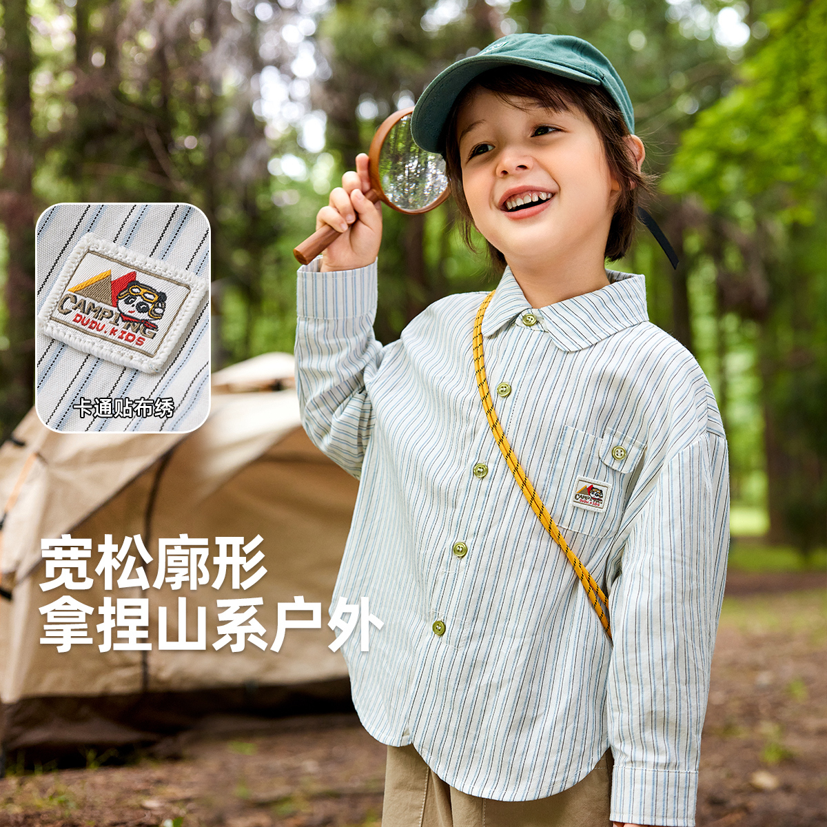 【100%棉】嘟嘟家儿童衬衫秋款条纹男童衬衣女童上衣秋季宝宝长袖