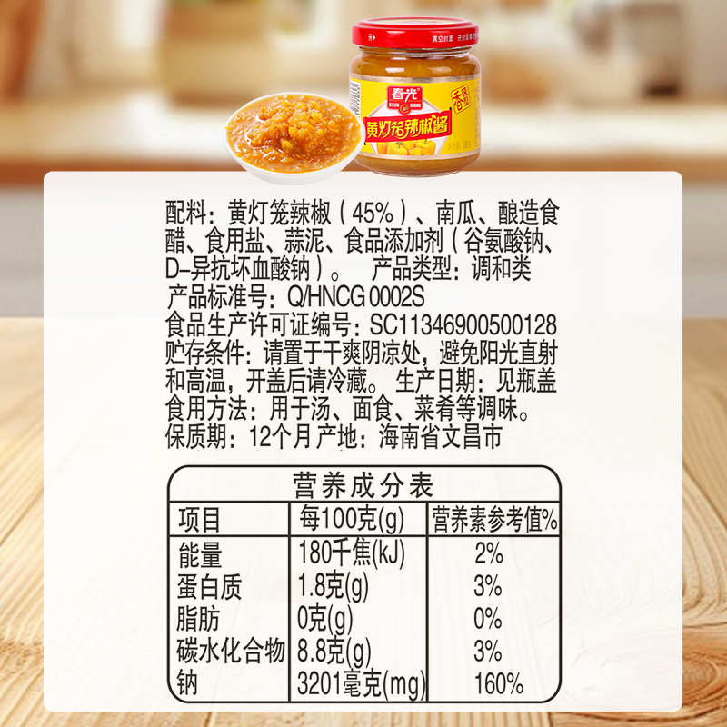 春光食品海南特产特辣黄灯笼辣椒酱蒜蓉瓶海南产新鲜香辣辣超辣