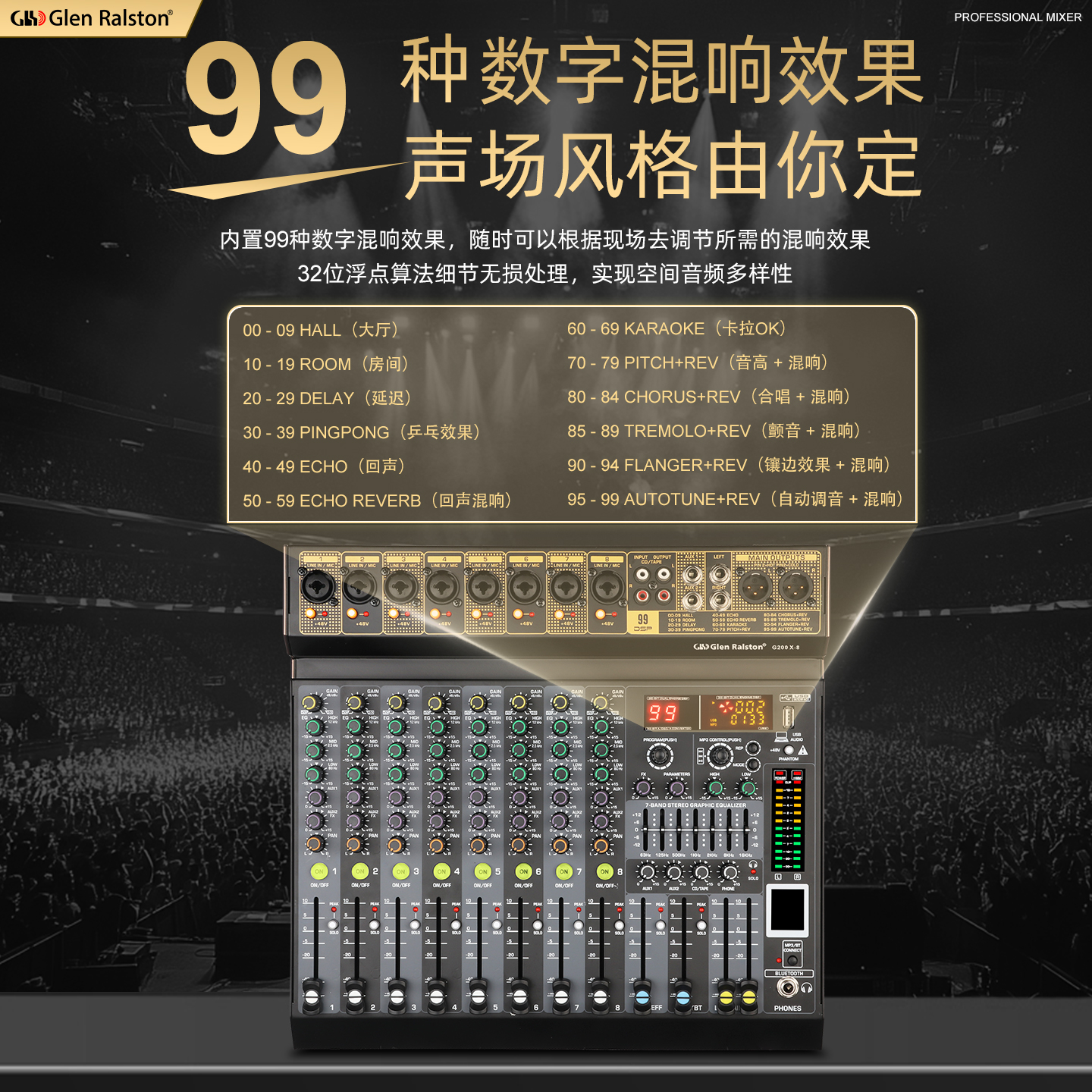 格伦士顿12路专业调音台会议家用户外舞台演出带蓝牙U盘混响效果