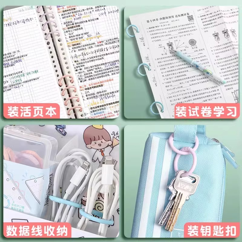 得力彩色活页圈扣环扣圈可拆卸塑料文件扣环装订圈活页夹环线圈环打孔器学生书本装订环办公封面活页纸固定扣