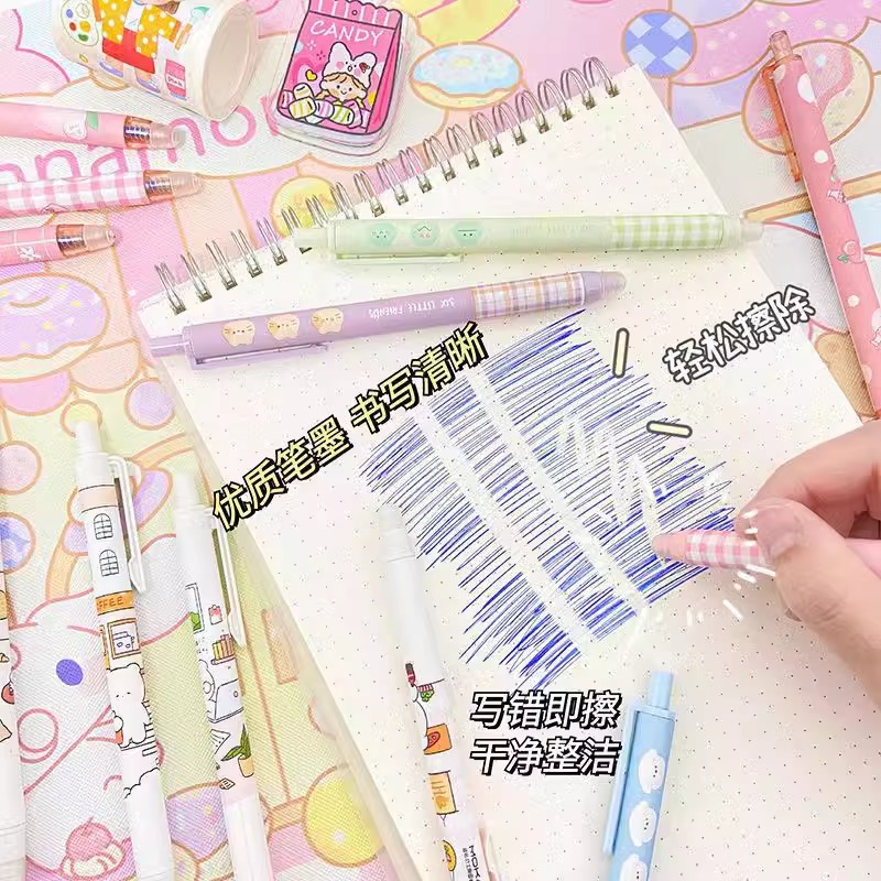按动可擦笔 0.5m中性笔芯小学生专用热可擦子弹头晶蓝高颜值笔
