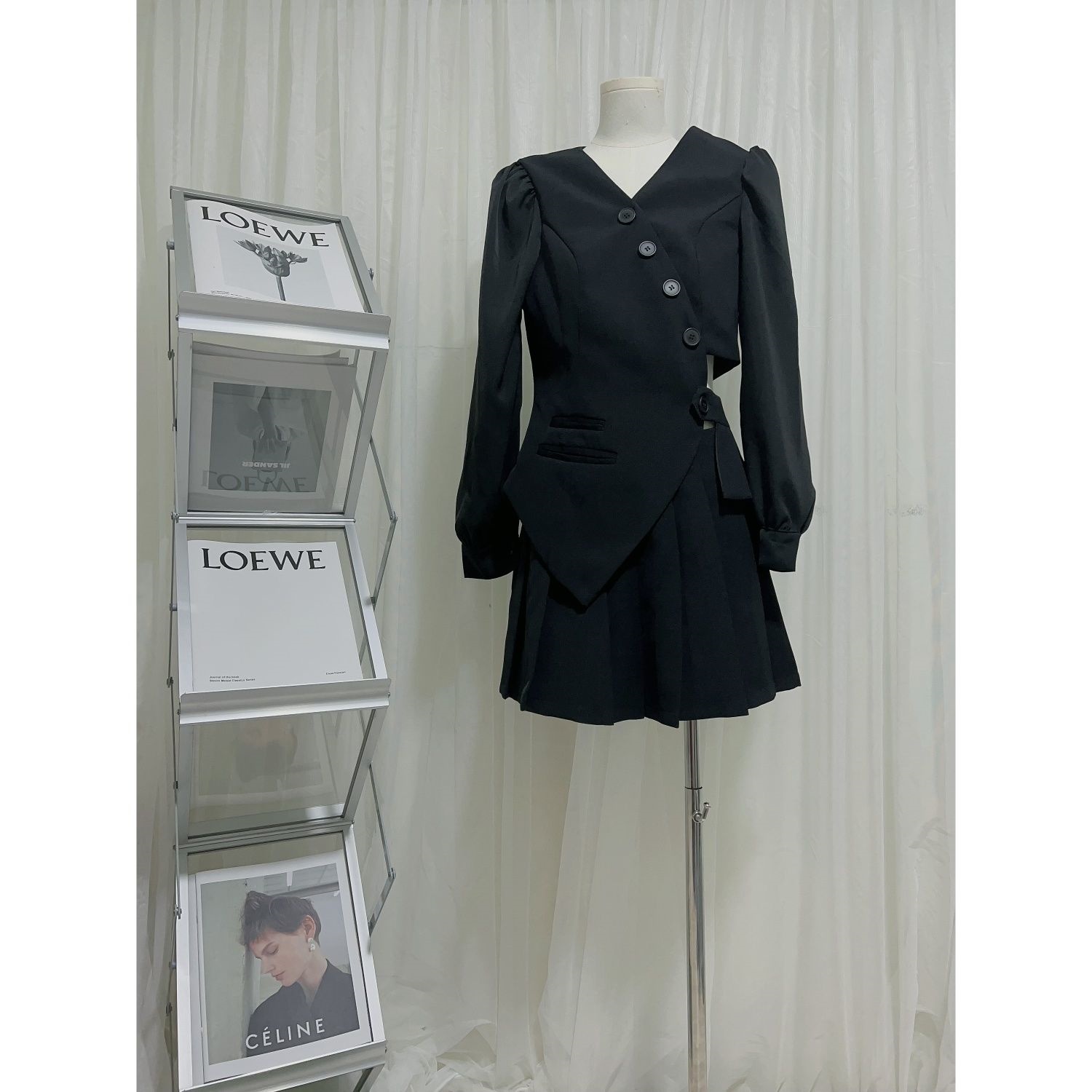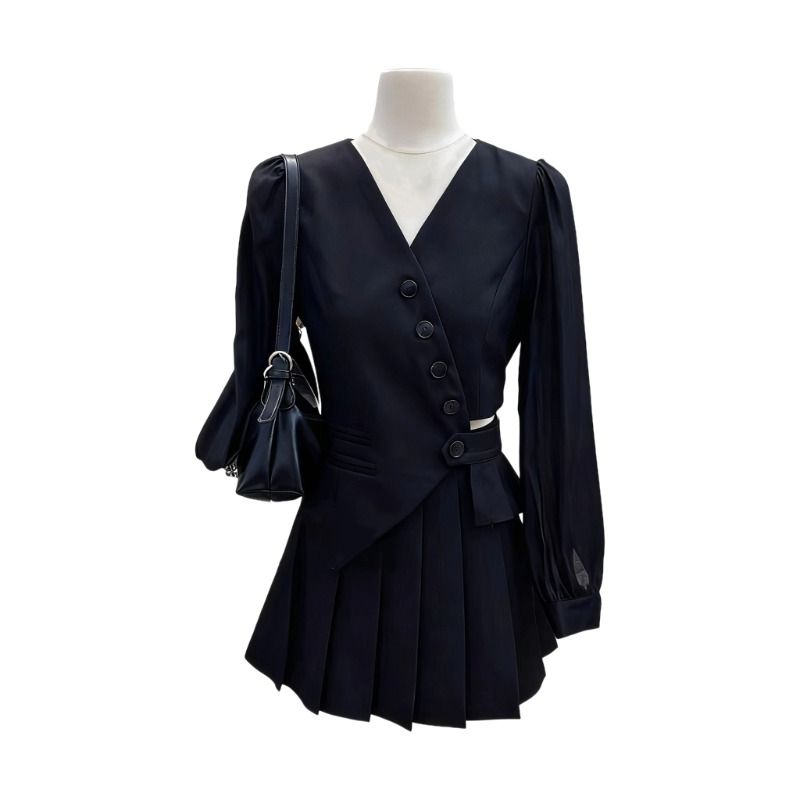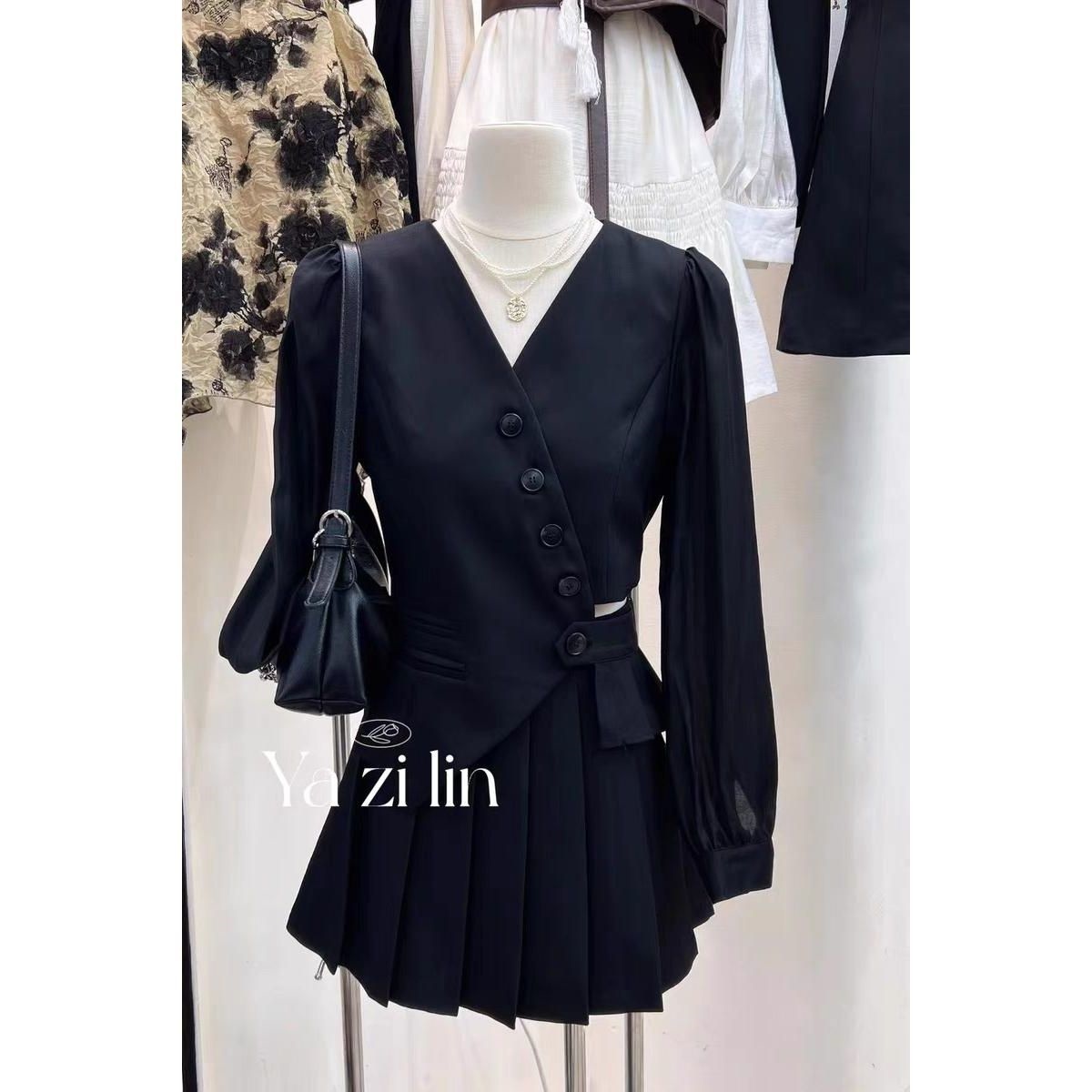 大码时尚套装2025秋季新款时髦显瘦黑色上衣百褶裙名媛千金两件套
