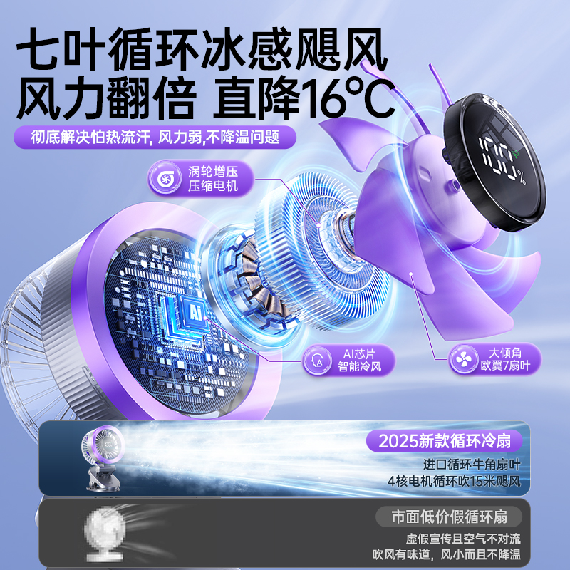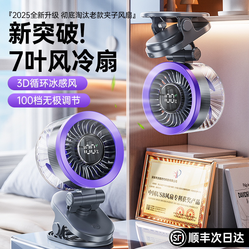 2025新款桌面小风扇制冷小型usb充电风扇学生上课静音办公室桌迷你便携宿舍挂壁超强力家用台式厨房无叶循环