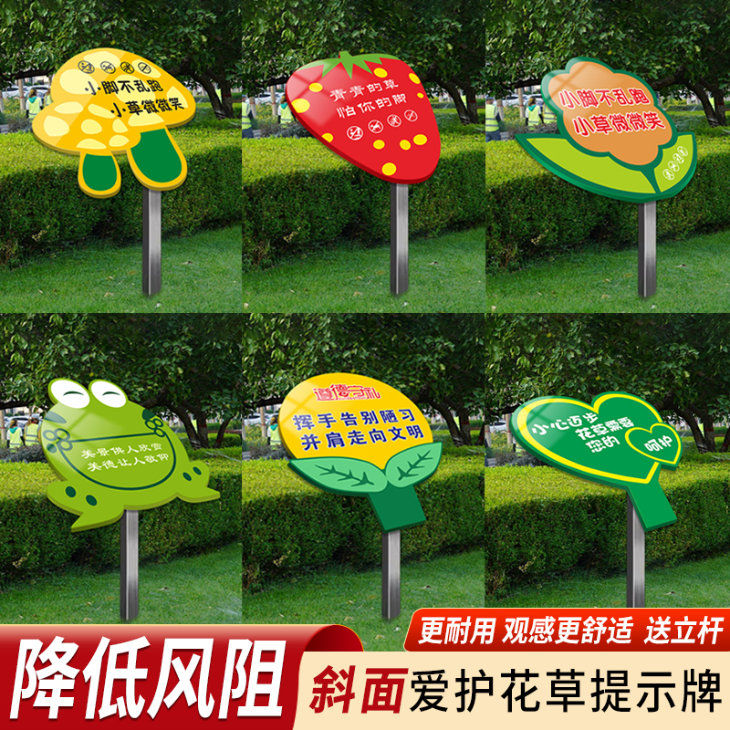 定制斜面花草提示牌公园草坪绿化警示牌爱护花草标识牌插地广告牌