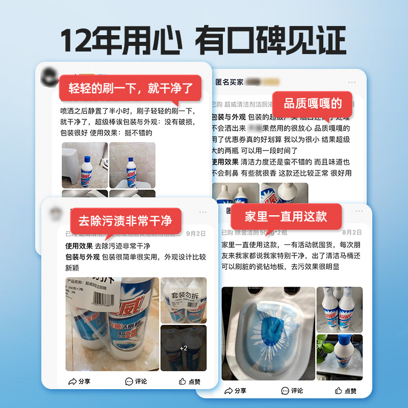 超威除菌洁厕精强力去垢瓦解顽渍尿渍除菌净味不伤瓷面马桶清洁剂