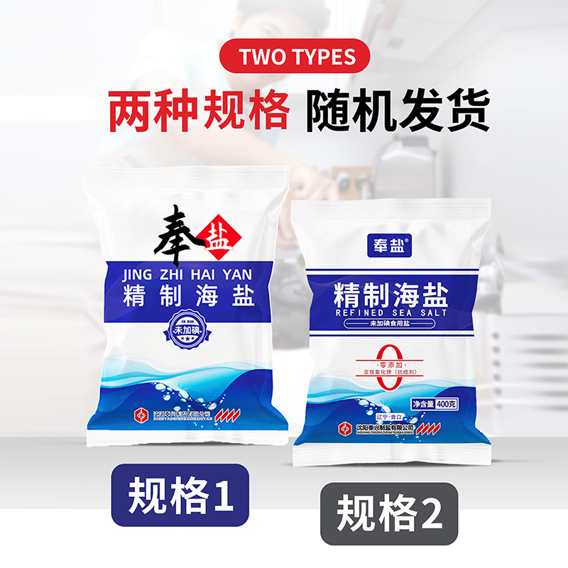 奉盐精制海盐未加碘家用食用盐400g*50袋细盐调味盐无碘商用直发