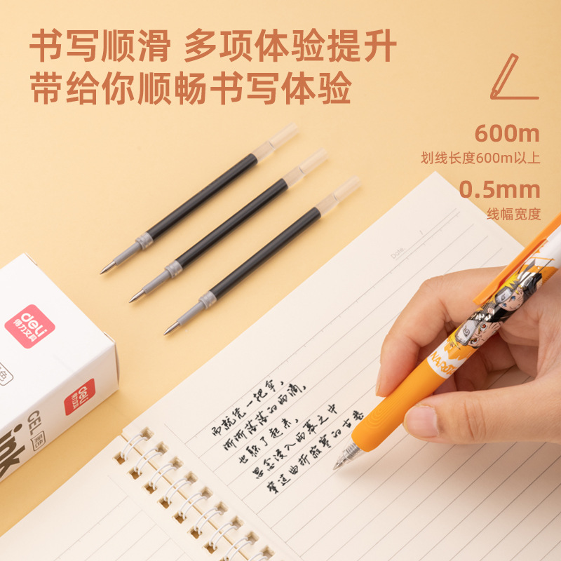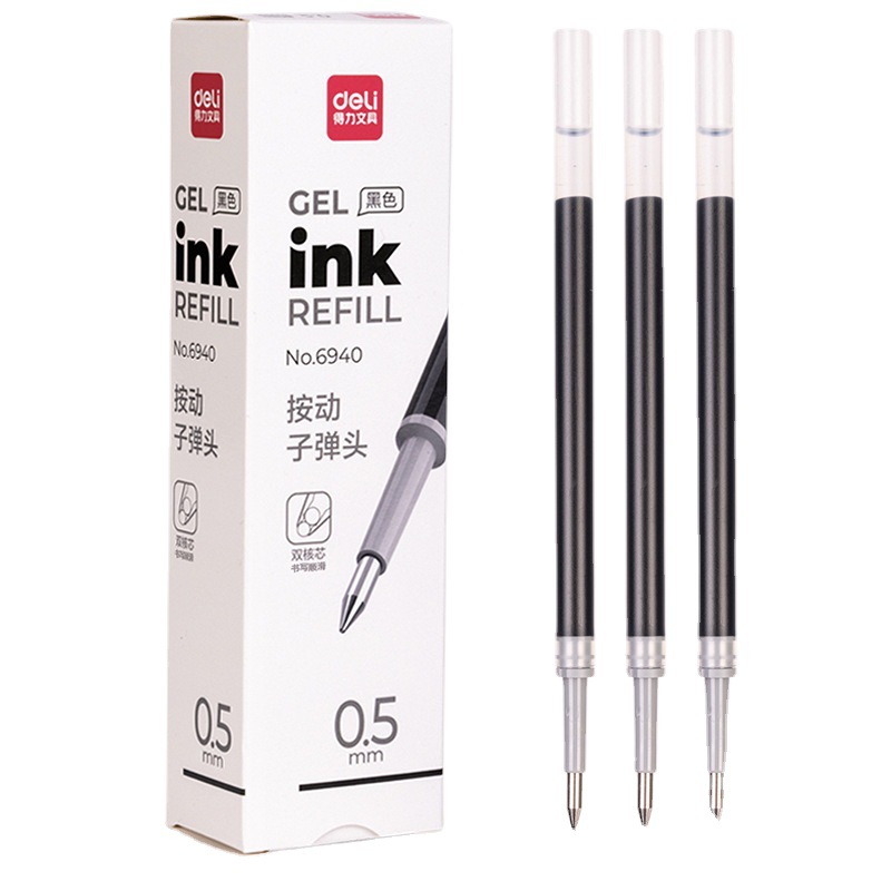 得力文具6940按动中性笔笔芯双珠子弹头学生考试书写抗摔水笔替芯