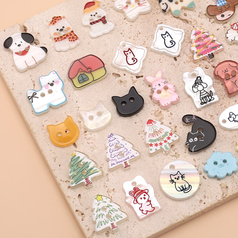 卡通装饰纽扣红绿圣诞树扣子配件幼儿园儿童手工diy衣服手装饰扣