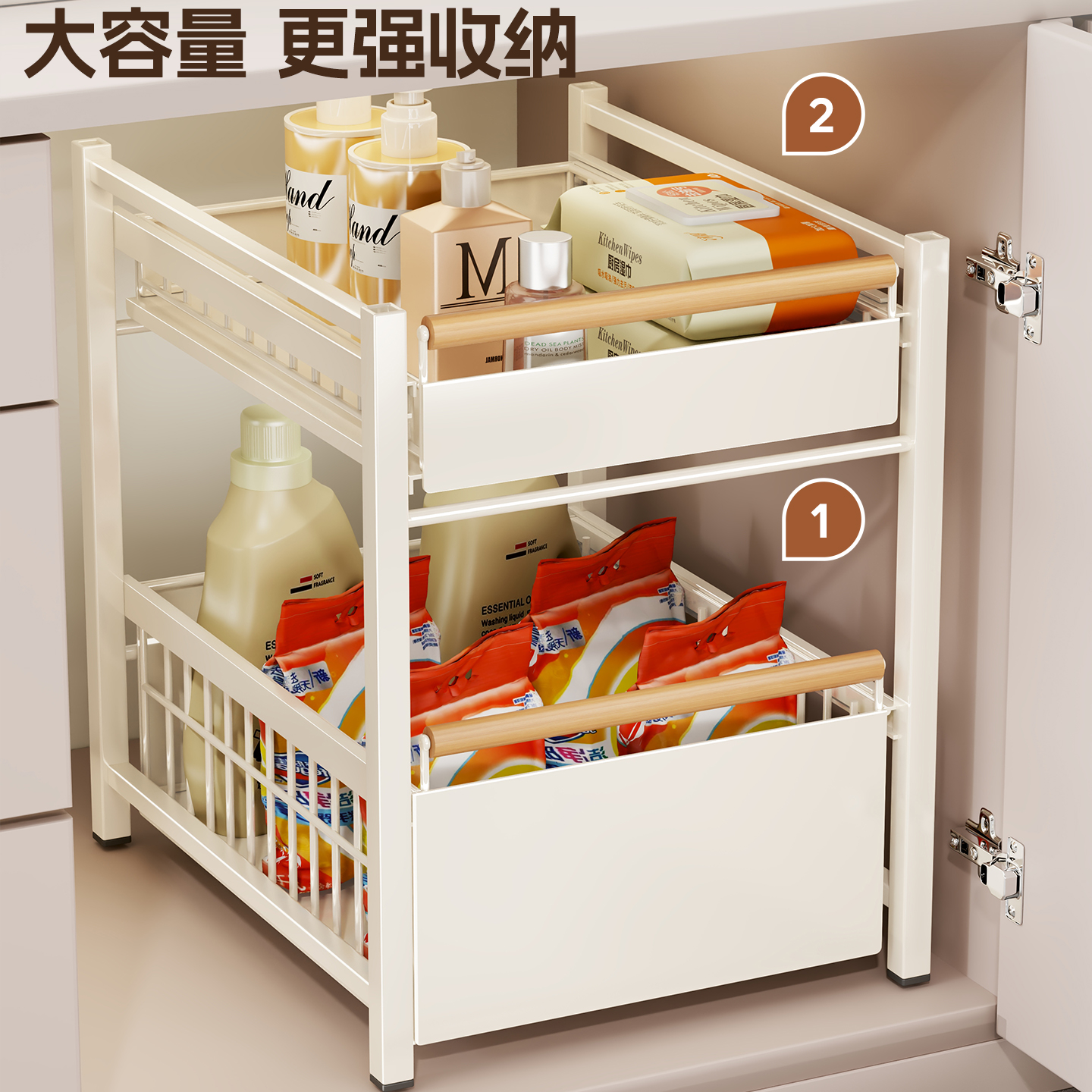 下水槽置物架浴室可抽拉收纳架卫生间洗手台下方多功能分层整理架