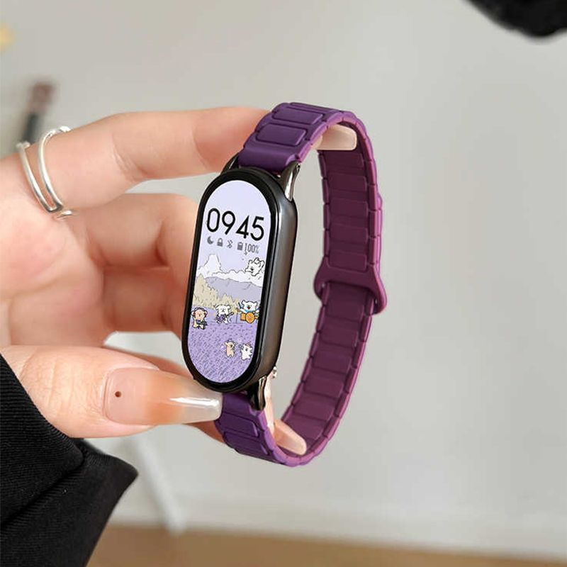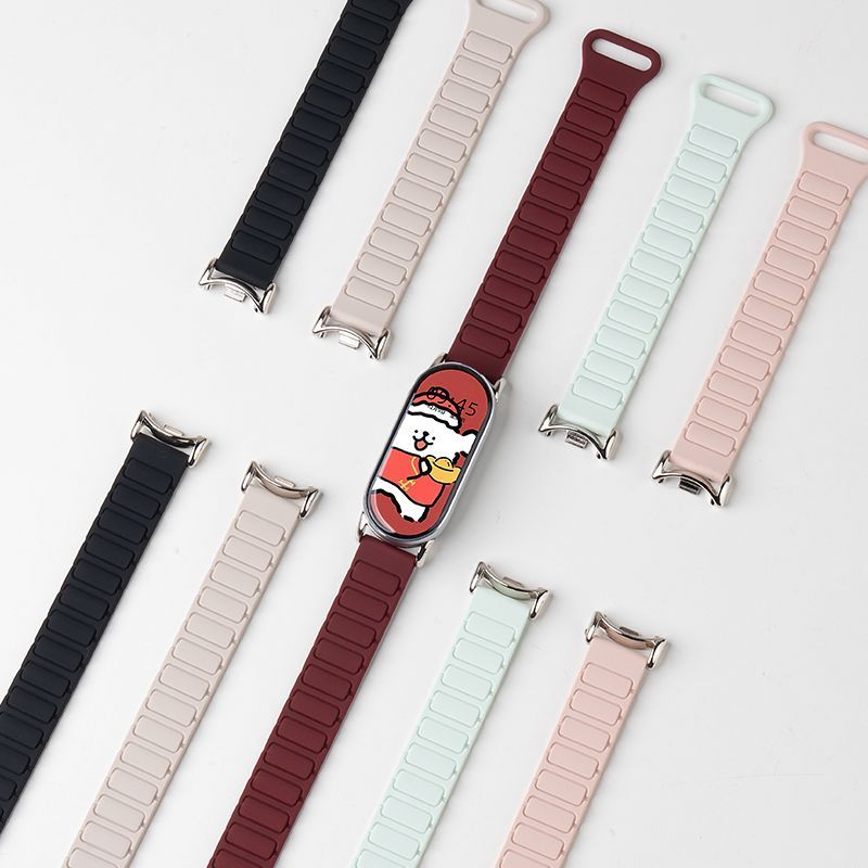 适用小米手环3/4/5/6/7/8/9/10/NFC表带新款反扣磁吸硅胶腕带十九八七六代NFC通用高级运动透气智能腕带9夏天