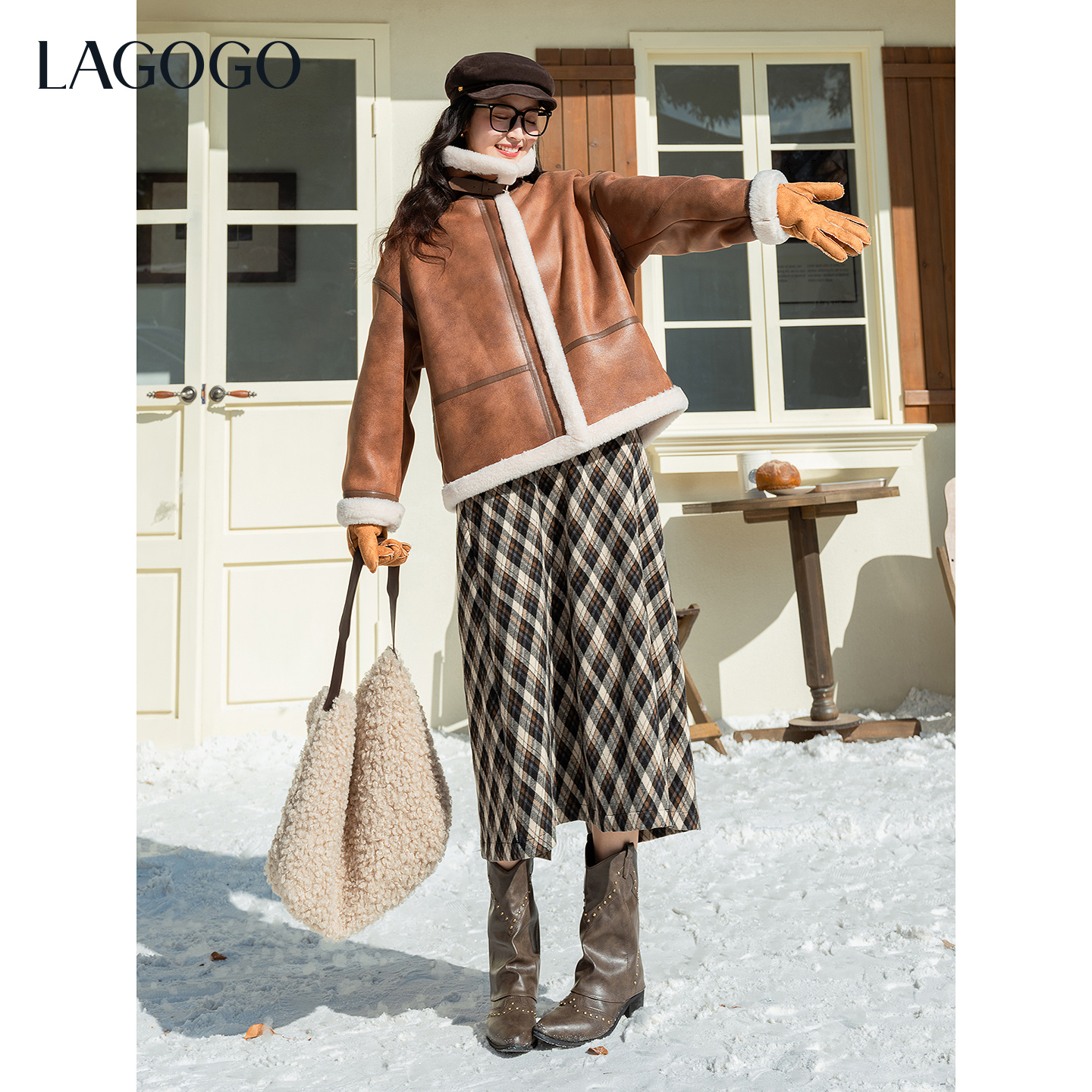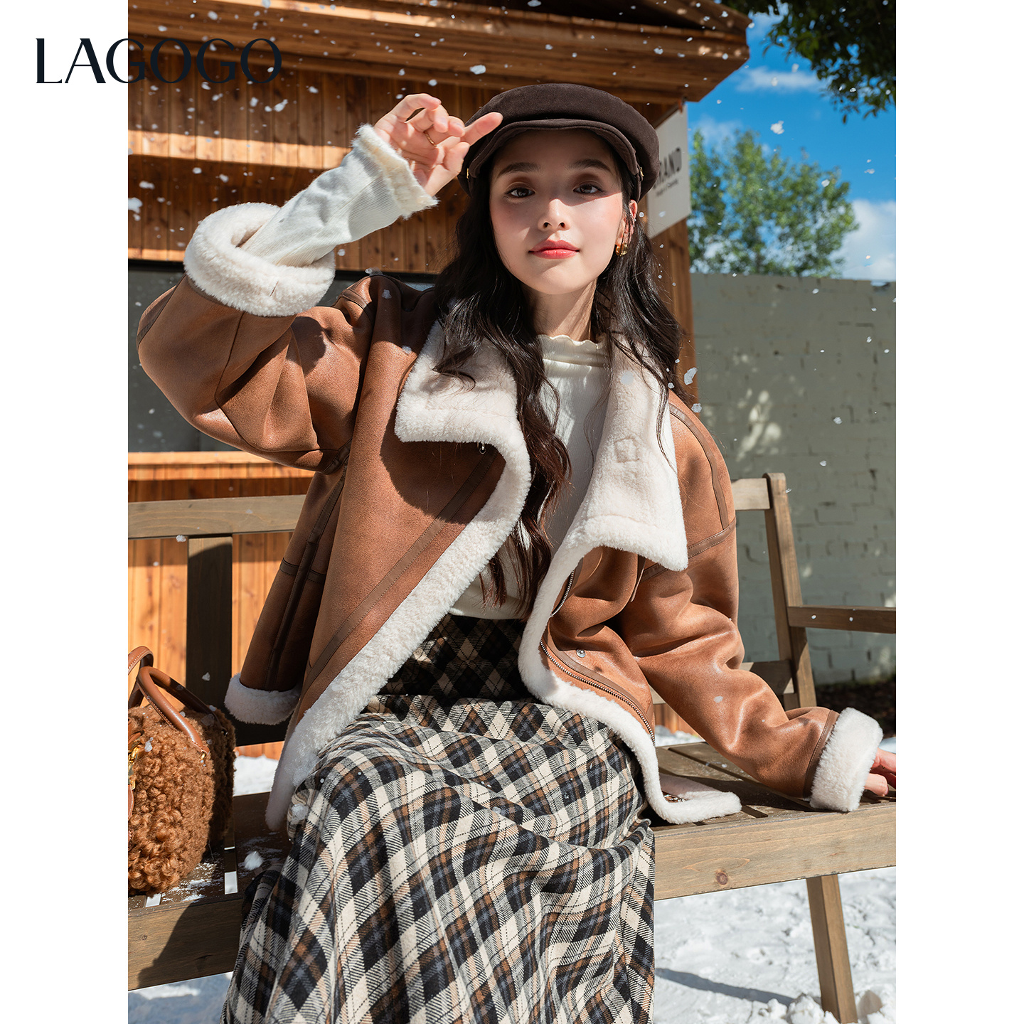 LAGOGO雾都旅人仿羊羔毛温暖外套女拉谷谷2025冬新款皮毛一体上衣