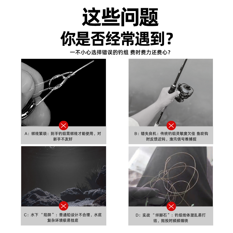 赤袖绑好鱼钩套装全套红袖子线双钩成品防缠绕鱼线鱼具钓鱼用品