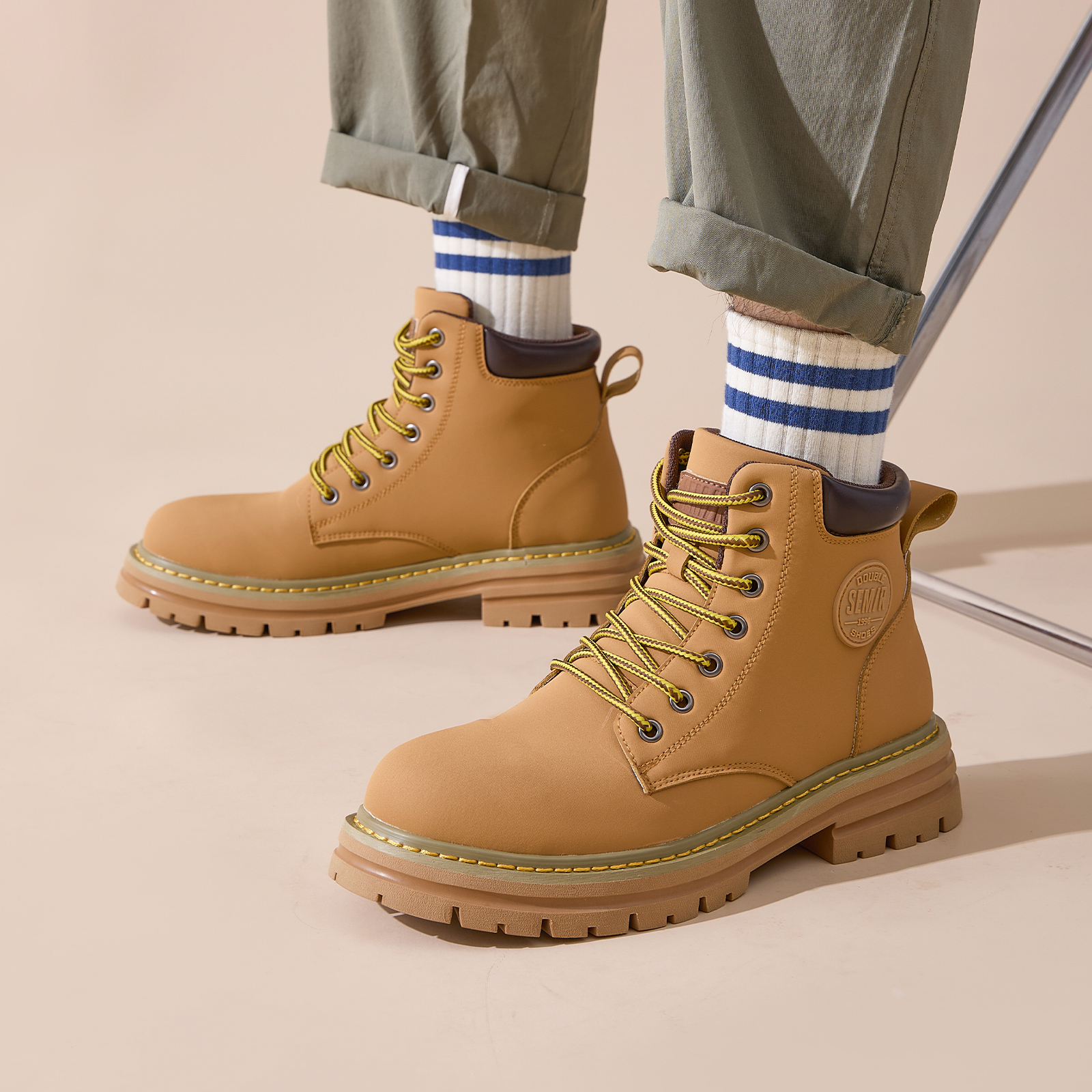 Semir男士马丁靴男款2025新款春秋季高帮大黄靴工装靴户外登山鞋