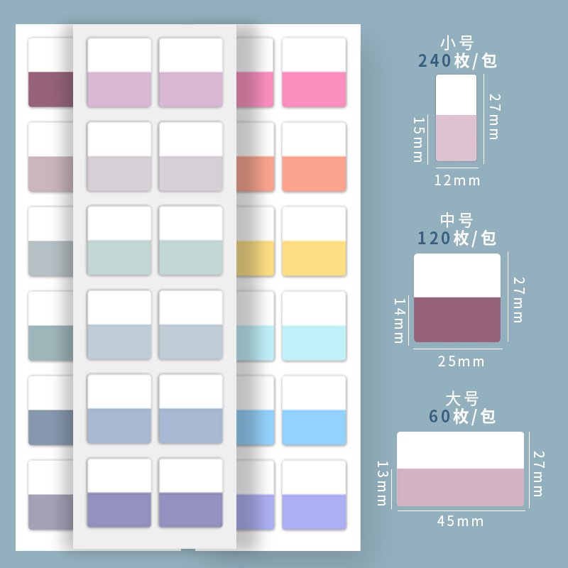 索引贴便签贴透明可书写纸质标签贴纸便利贴莫兰迪分类指示书签记号引索贴小条标记小彩色荧光贴荧光色防水