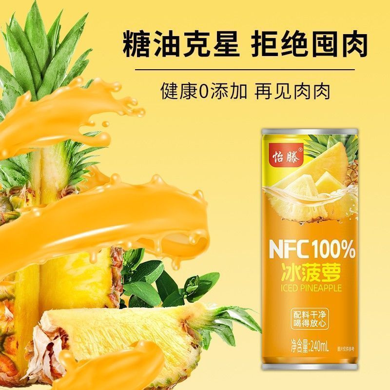 怡滕菠萝100%NFC冰菠萝果汁饮料夏日必备饮品罐装好喝解渴整箱