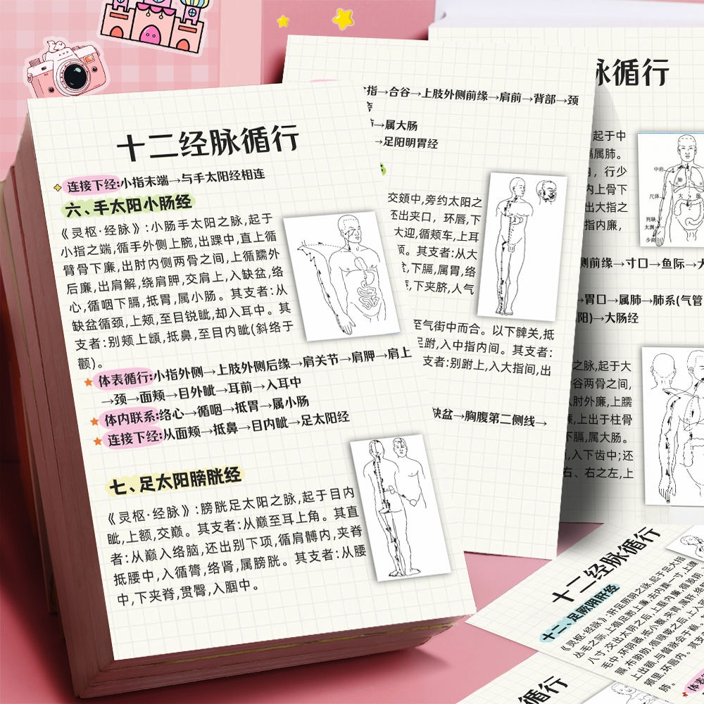 中医人体十二经脉循行医学生针灸机械胡穴位解析经络疏通科普贴纸