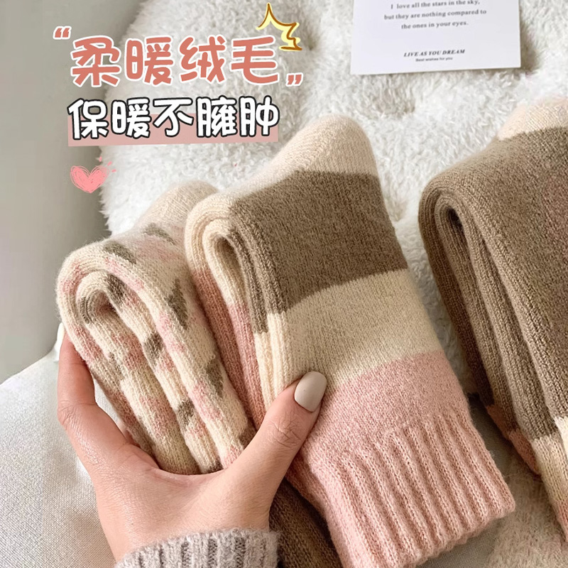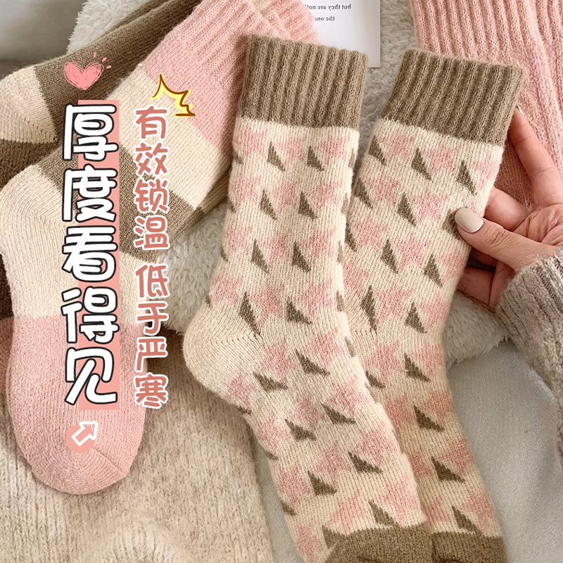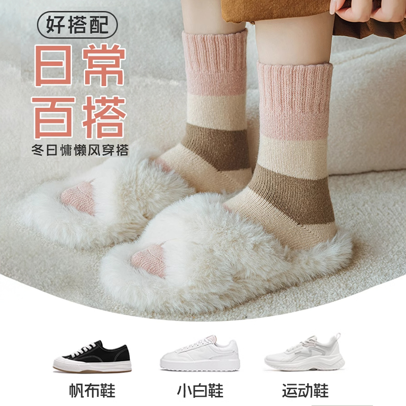 厚羊毛袜子女秋冬季加厚加绒保暖中筒袜居家睡眠地板袜抗起球长袜