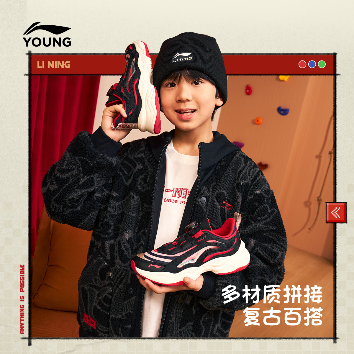 李宁童鞋休闲鞋男女大童大极光旋转扣版减震回弹舒适圆头低帮童鞋