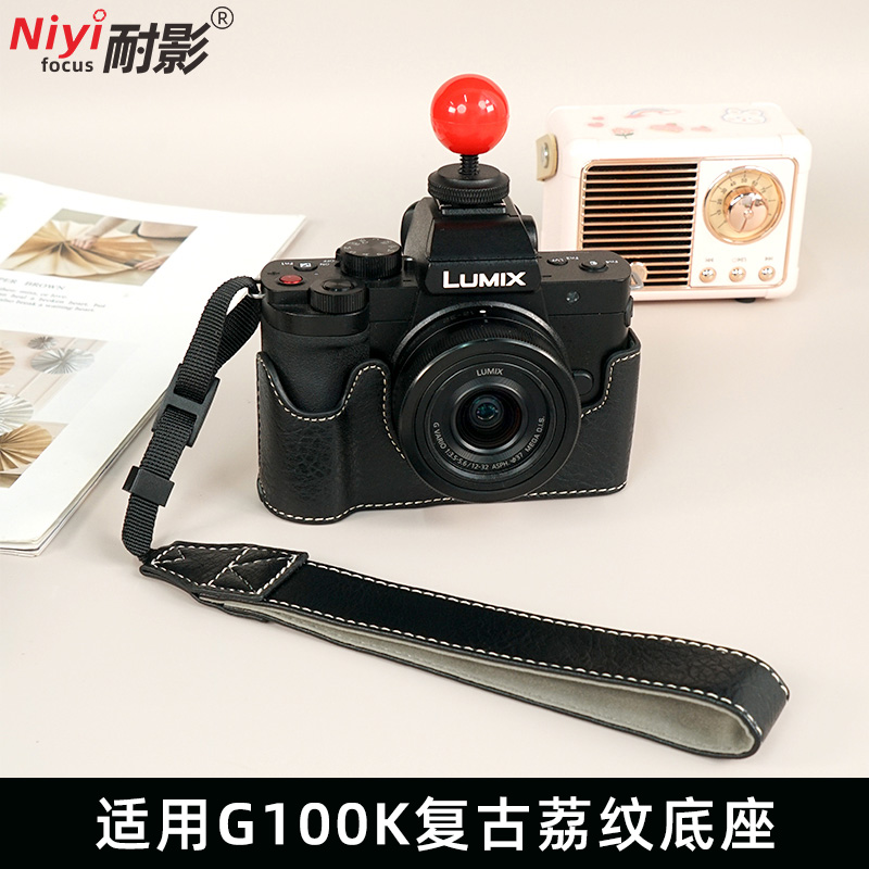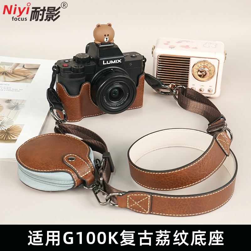 耐影 适用于松下G100K复古相机包FZ80/FZ85荔枝纹底座g100K肩带腕带fz80/fz85相机配件保护套