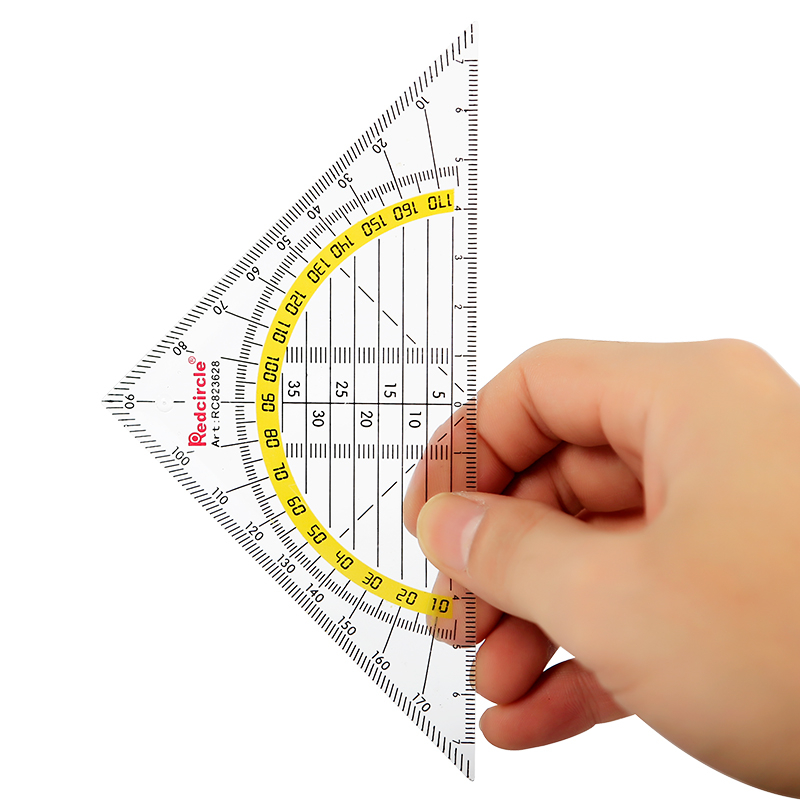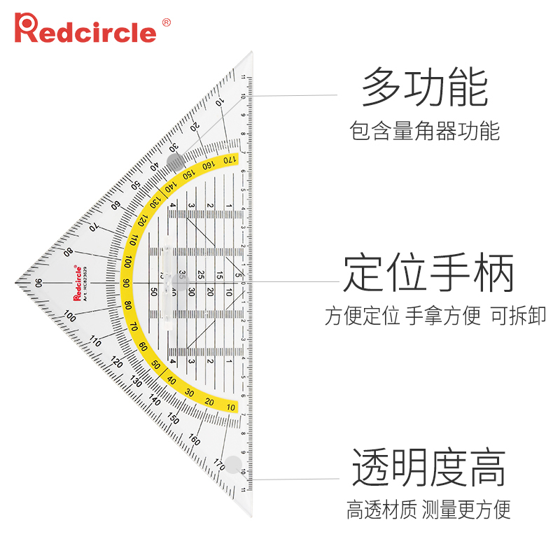 国产REDCIRCLE/红环等腰三角尺14CM手绘制图三角板22CM专业特种尺量角器木工室内绘图设计带手柄尺