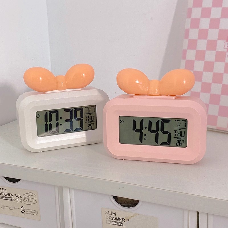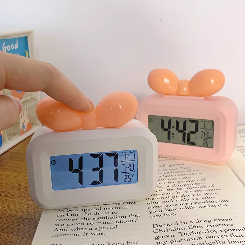 可爱多巴胺蝴蝶结桌面多功能时钟家用电池款闹钟学生宿舍时间管理