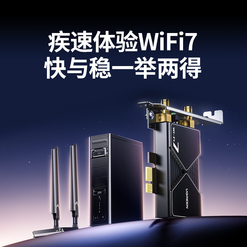 绿联PCIE无线网卡蓝牙二合一台式机wifi7接收发射器内置PCIE转接板插电脑主机5.4蓝牙适配器5G千兆双频信号