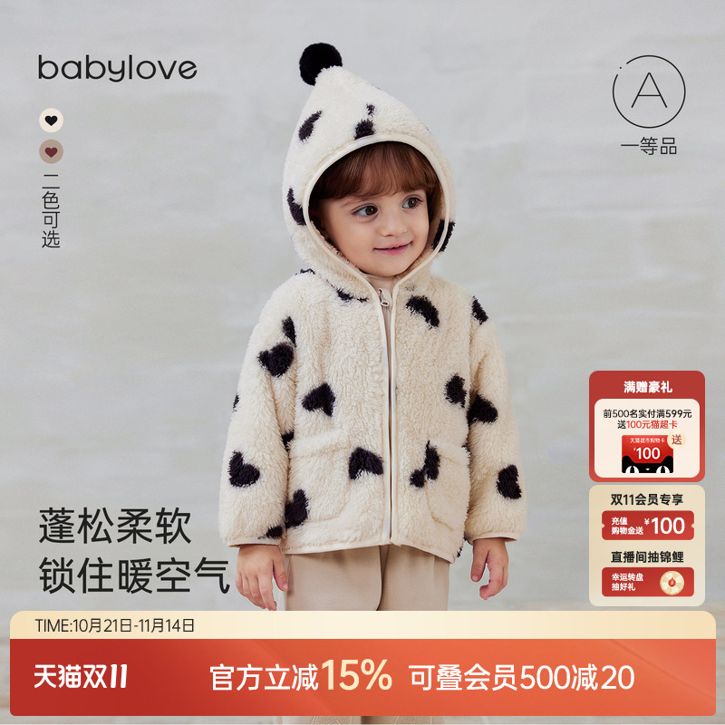 babylove宝宝连帽外套秋冬舒棉绒保暖加绒上衣婴幼儿百搭外出服
