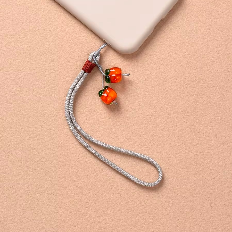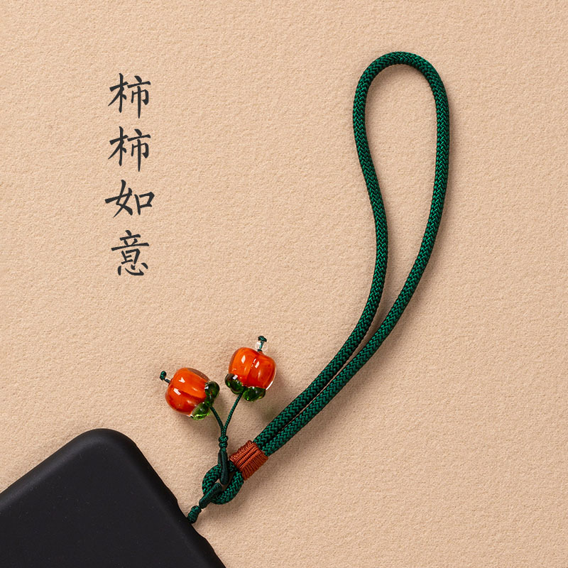 手机挂绳手腕绳腕带女款编织挂件结实防摔复古手机链柿子吊坠防丢
