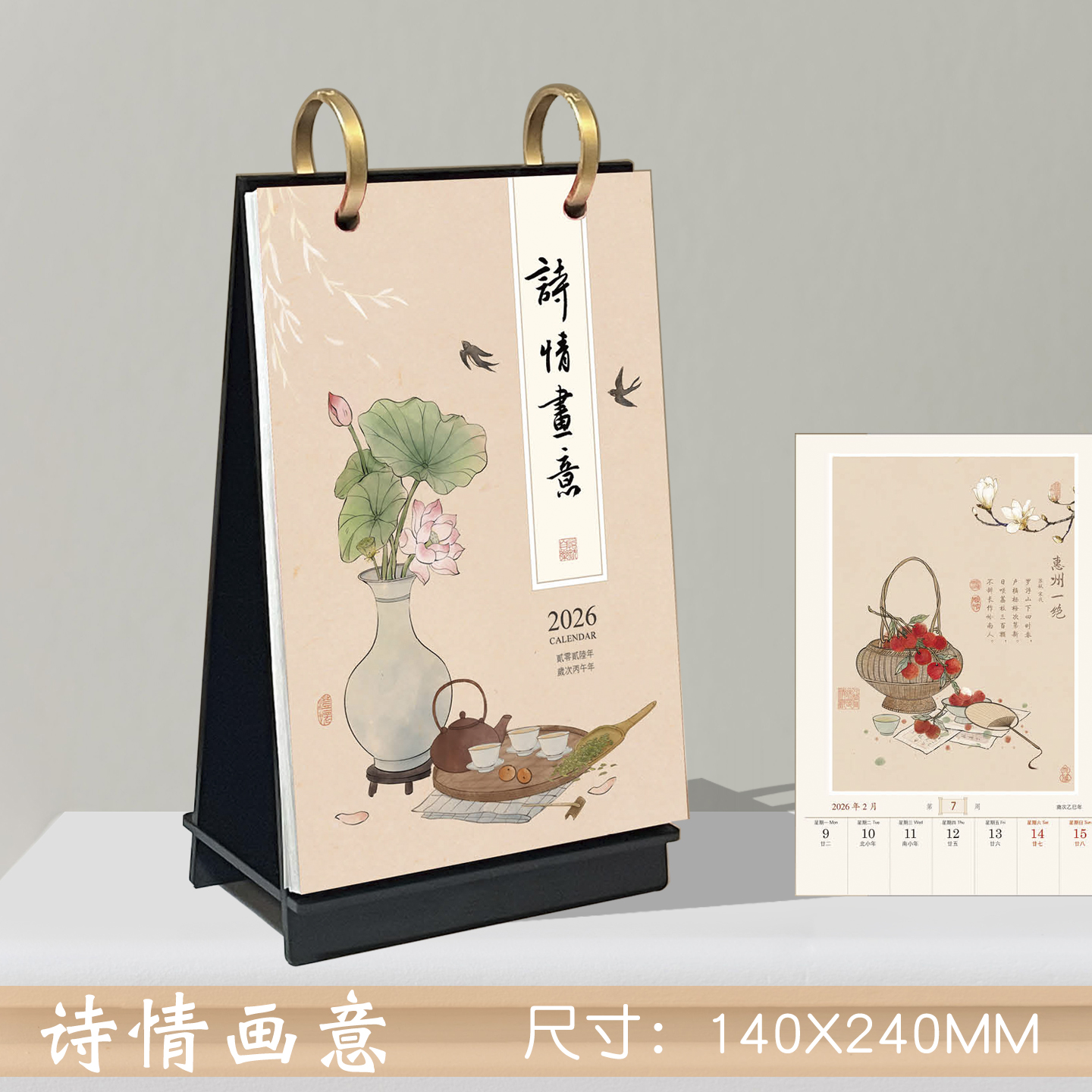 2026年台历新款高档一周一张国风文创小清新创意桌面摆件日历月历记事本礼品定制企业订制logo
