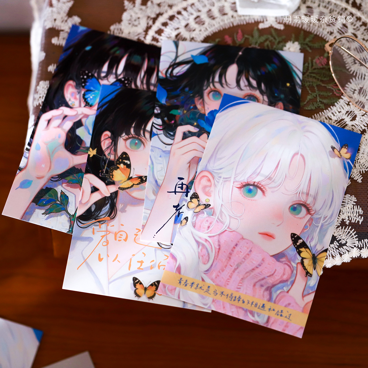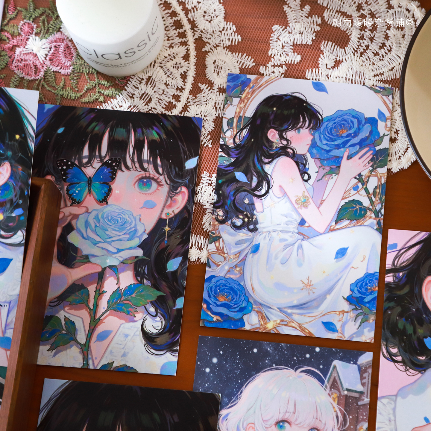 朝雨 玫瑰与你明信片高级感ins风少女人物海报墙贴墙面装饰卡片