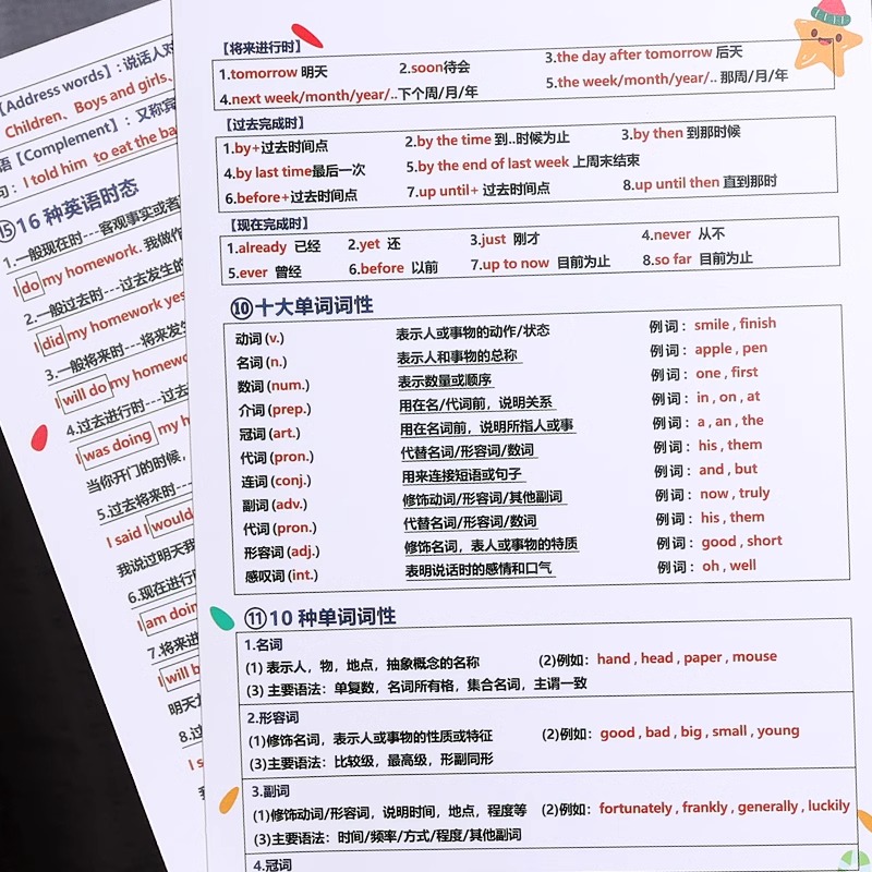 整个英语语法体系知识点汇总大全小学生初中生背诵学习神器卡片