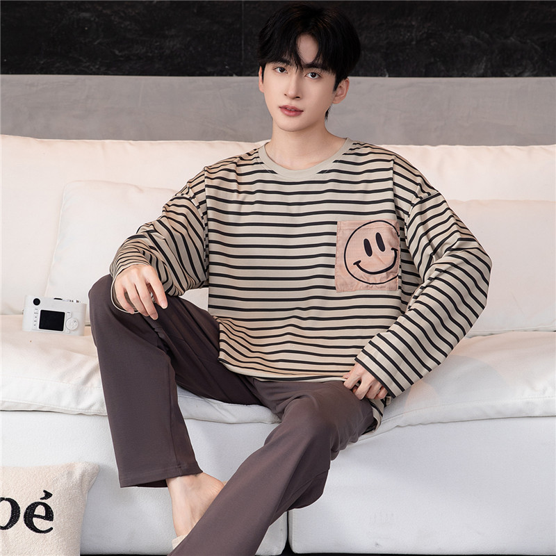 青少年睡衣男款春秋季长袖纯棉初中学生男孩中大童条纹家居服套装