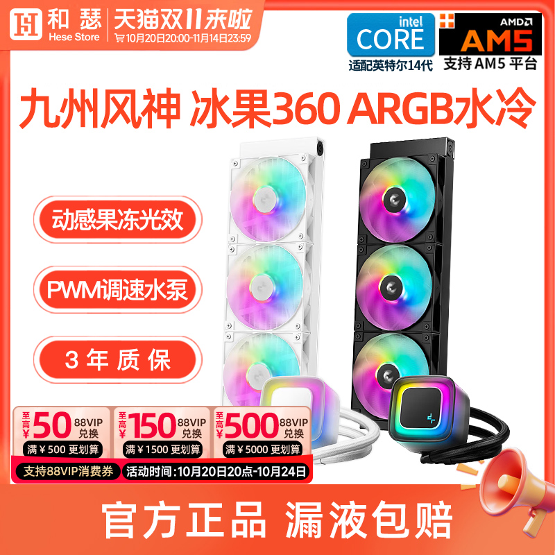 九州风神360水冷冰果台式机电脑一体式CPU散热器ARGB神光同步白色