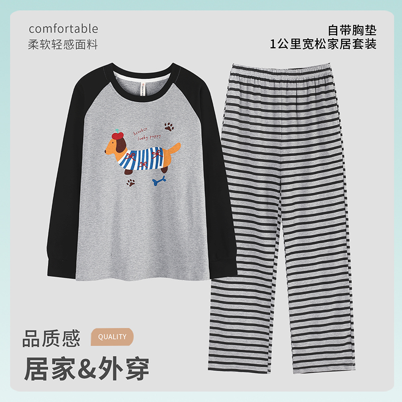 蕉内棉棉301Home家居服套装男纯棉睡衣女新款带杯带胸垫秋季长袖